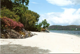 The logical route onwards from Ardnamurchan is north to Mallaig to catch the ferry for Skye, and as you're zooming along (the road's now two-way and reasonably fast) you might catch a glimpse of white beach out of the window. Turn round and investigate. These are the White Sands of Morar. There are lots of these exotic-looking beaches with white sand and turquoise sea scattered around Scotland's West Coast (Calgary on Mull is particularly nice) but I like this one because of its odd juxtaposition with the A road - and because once, heading home after a wet fortnight on Skye, we stopped there on an unexpectedly sunny day. Also it's one of the few beaches you can sit on and watch a steam train go past.